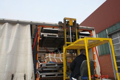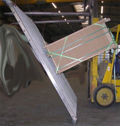 Einweiserschienen, damit ein Stapler sie in den Aufbau heben kann.