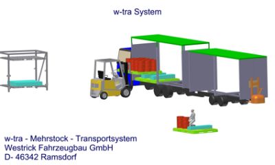 ... the W-TRA® flexible multi-level loading system from Westrick of Germany. The system comprises load platforms and a frame which is mounted inside a body to accommodate these platforms. The basic idea is to allow loads easily to be stacked in multiple layers, taking advantage of what otherwise would be wasted body space. "Basically, the individual load platforms create the vehicle flooring, onto which loads can be tied down before being loaded on the vehicle," explains Westrick.